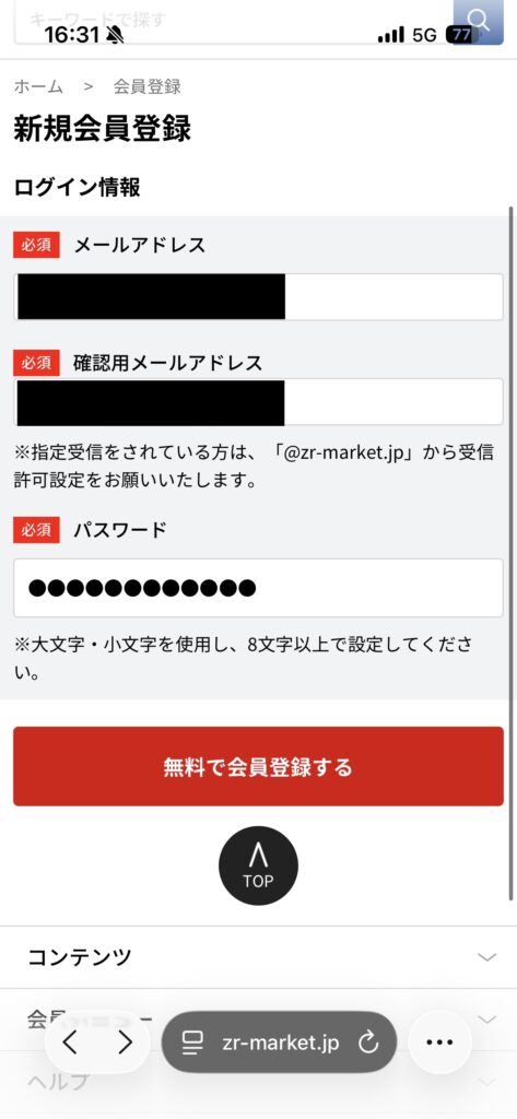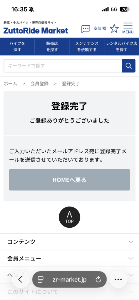 登録完了の文字が出てきたら無事会員登録完了です。