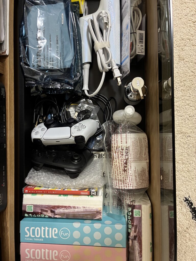 → ティッシュや電池ゲームのコントローラーなどを収納しています。日頃使用頻度が多いものを入れると取り出しやすいと思います!