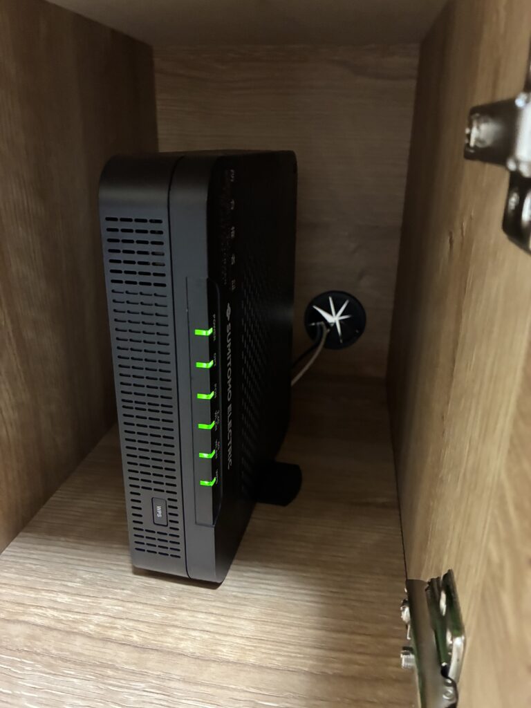 リビングのテレビアンテナが届く範囲で設置しています! 方向や違う場所を考えましたが、ここがいちばんベストでした!