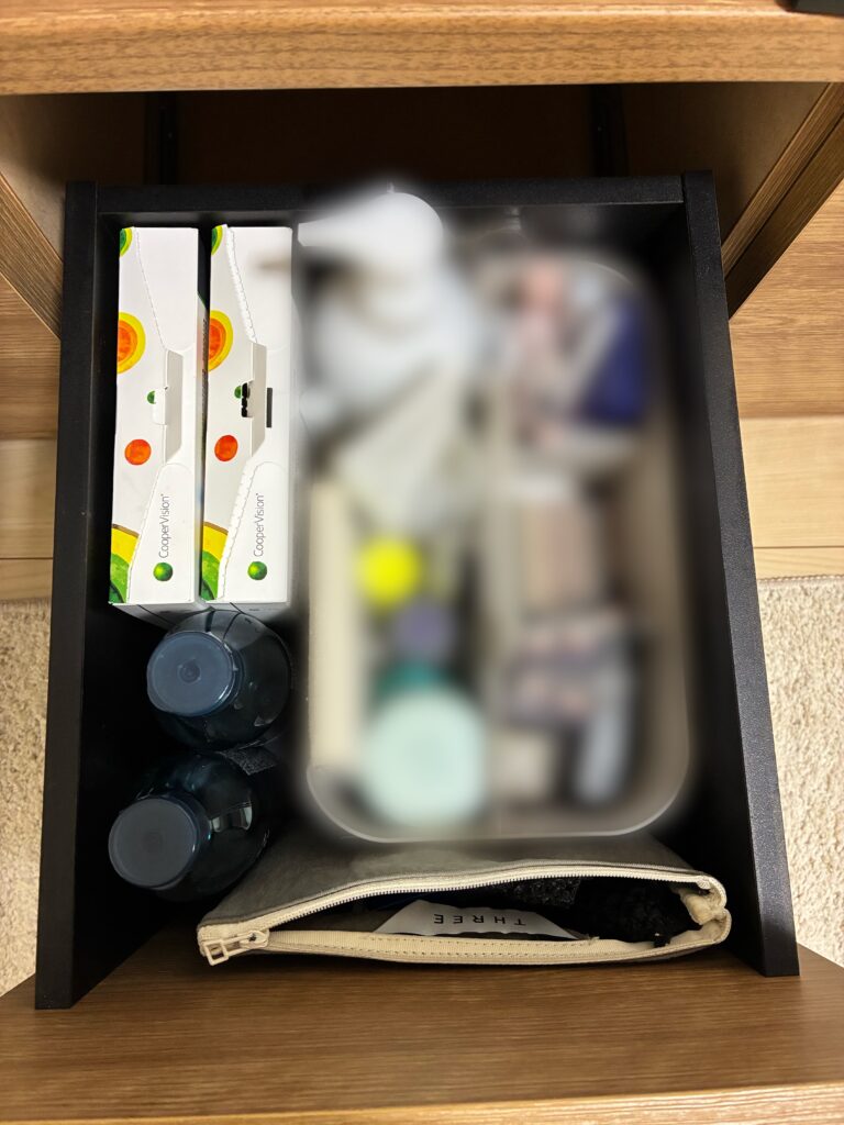→ 彼女のお化粧道具や僕らの保湿系統などがきれいにスッポリ入っています。