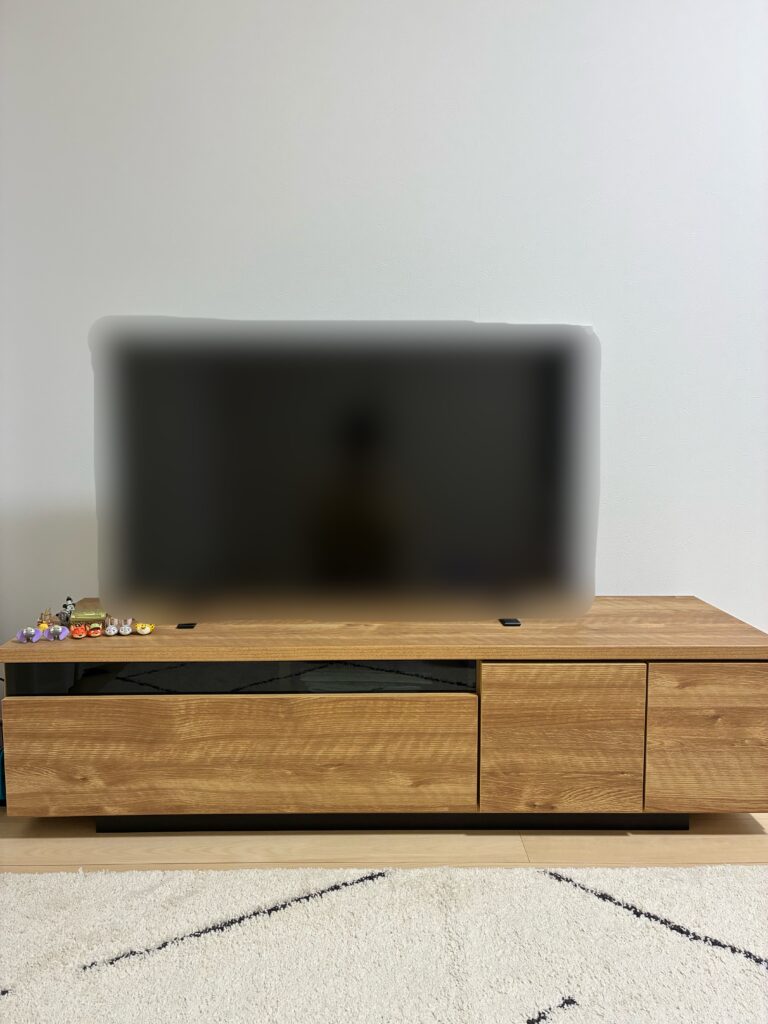 お部屋に馴染むナチュラル系のデザインと収納を兼ねたテレビ台を検討していた所、僕らの考えにピッタリなテレビ台を発見!